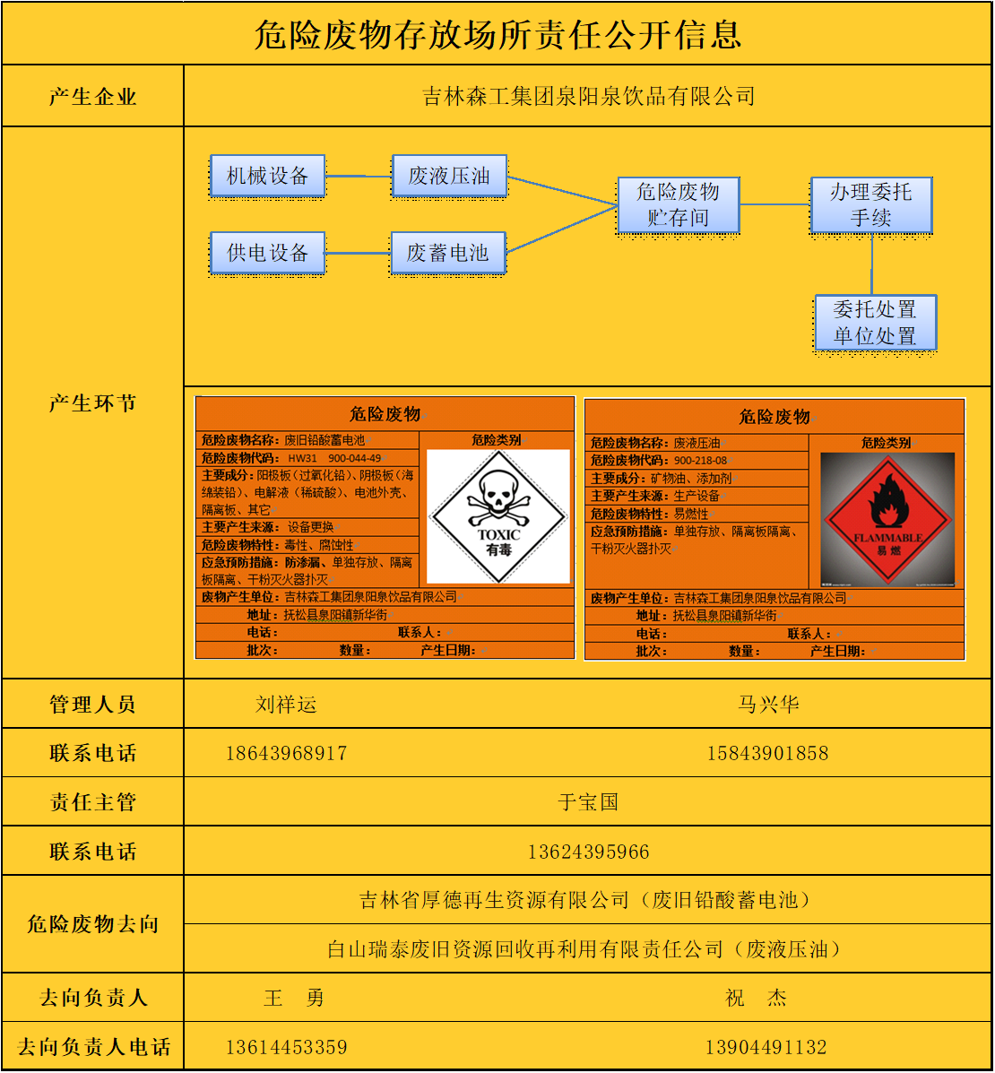 危險(xiǎn)廢物存放場所責(zé)任公開信息表如下: